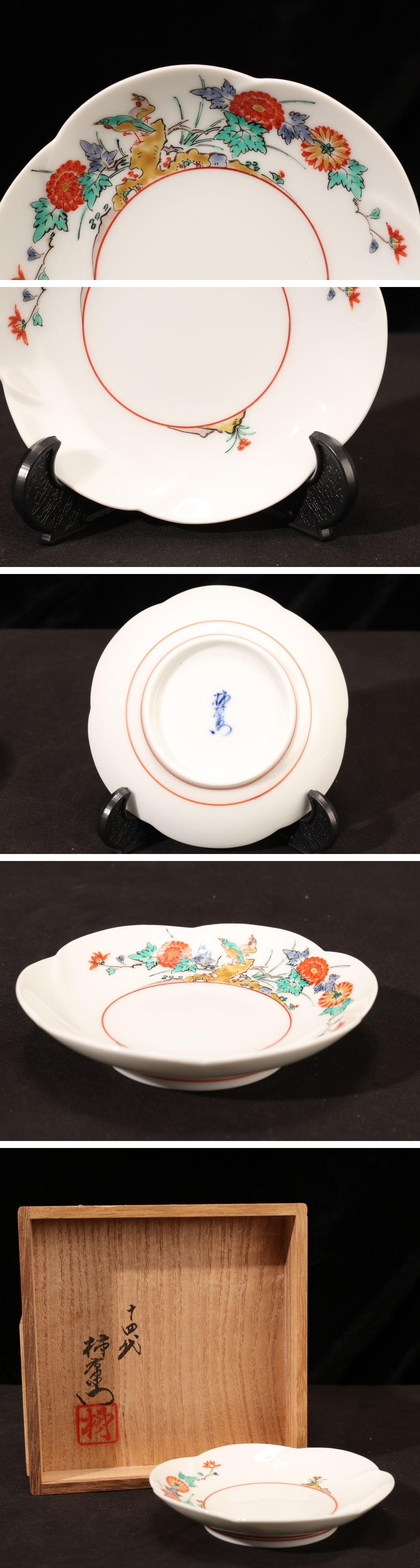 - 珍品堂 1円から T83-15 人間国宝 無形文化財 十四代 酒井田 柿右衛門 染錦 菊梅花紋 皿 6枚 共箱 木箱 時代物 古美術 骨董品 アンティーク