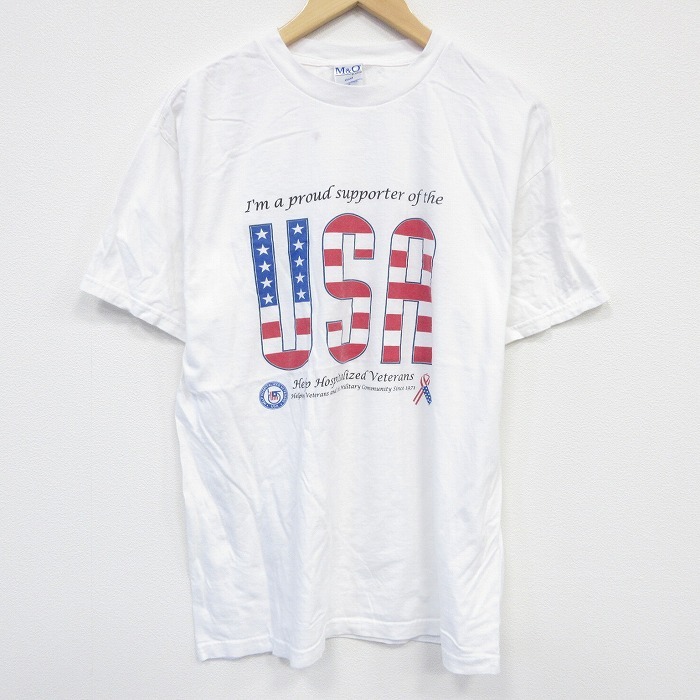 - L/古着 半袖 ビンテージ Tシャツ メンズ 00s USAロゴ コットン クルーネック 白 ホワイト 25sep26 中古