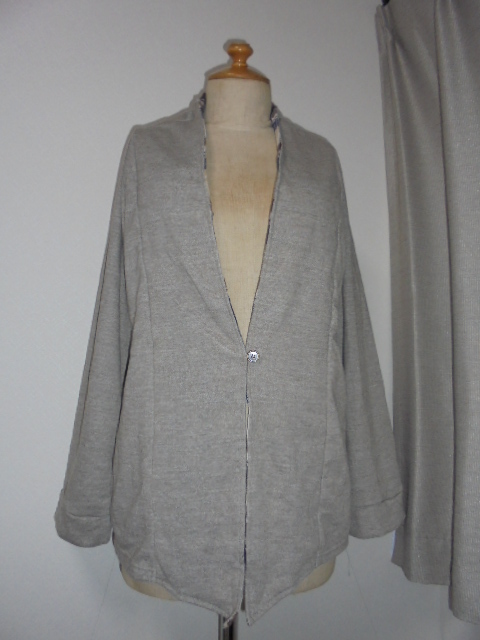 - 未使用品。霜モカ茶比翼部裏チェック切替裏毛カーディ