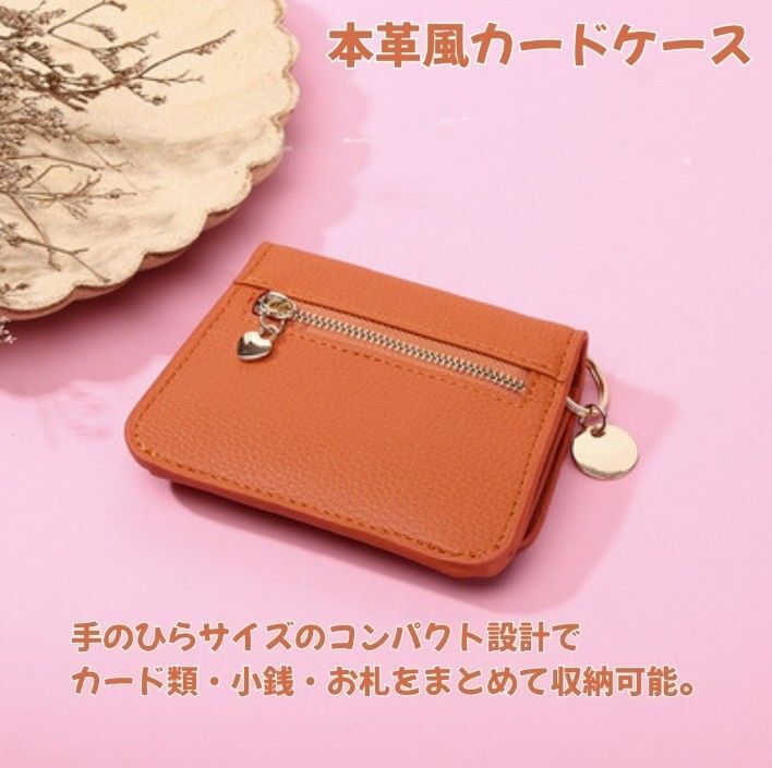 - カードケース ミニ財布 二つ折り オレンジ レディース 定期入れ 名刺入れ シンプル