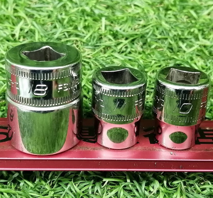 - 中古品 Snap-on スナップオン 3/8 6角 シャローソケット 10mm 11mm 18mm FSM101 FSM111 FSM181 3個セット