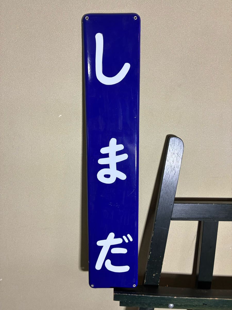 - 国鉄 放出品【東海道本線 しまだ 島田駅(静岡) 駅名標 琺瑯看板 駅名板】鉄道廃品 鉄道グッズ レトロ 金属製 ホーロー 15.2x74.7cm