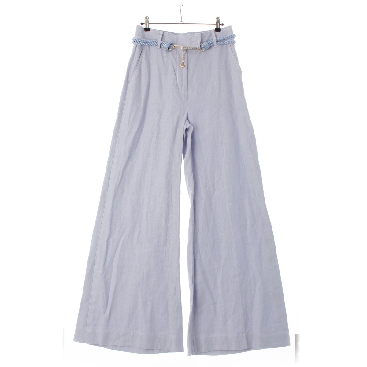 - ZIMMERMANN ジマーマン リネン ベルト付き ワイドレッグ パンツ ブルー 1【中古】