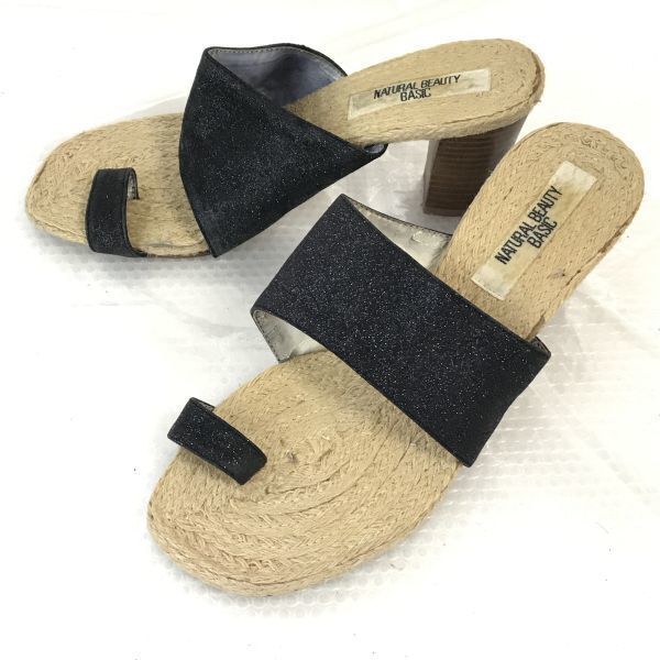 - NATURAL BEAUTY BASIC★サムループサンダル【23.0/黒/black】ハイヒール/太めヒール/Shoes◆Q-106