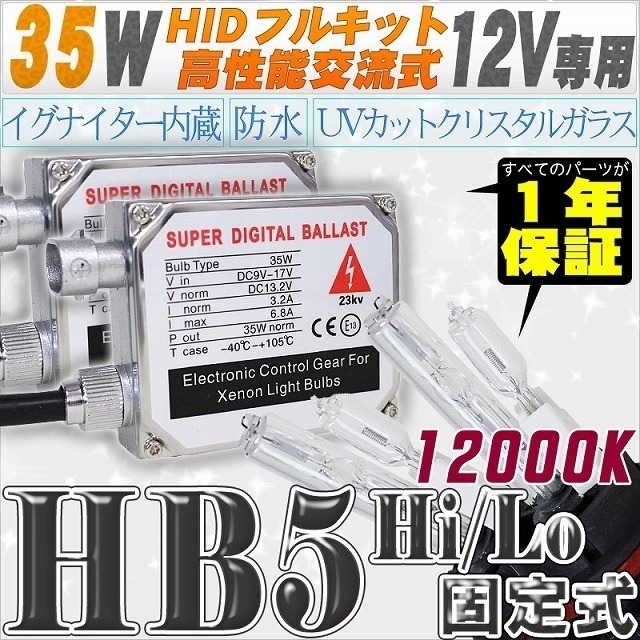 - 高性能 HIDキット 35W HB5 Hi/Lo固定式 12000K 【交流式バラスト&クリスタルガラスバーナー】