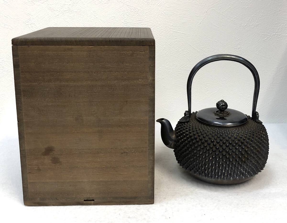 - 純銀 霰打 湯沸 銀瓶 純銀刻印 茶道具 煎茶道具 急須 骨董品 箱付き 名無し 重量430g