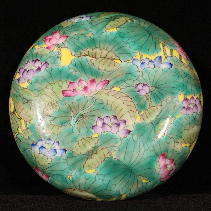 - 旧 清雍正 粉彩 荷図粉箱 唐磁 古陶磁器 陶芸 中国古美術 古賞物 古置物 唐物 S710