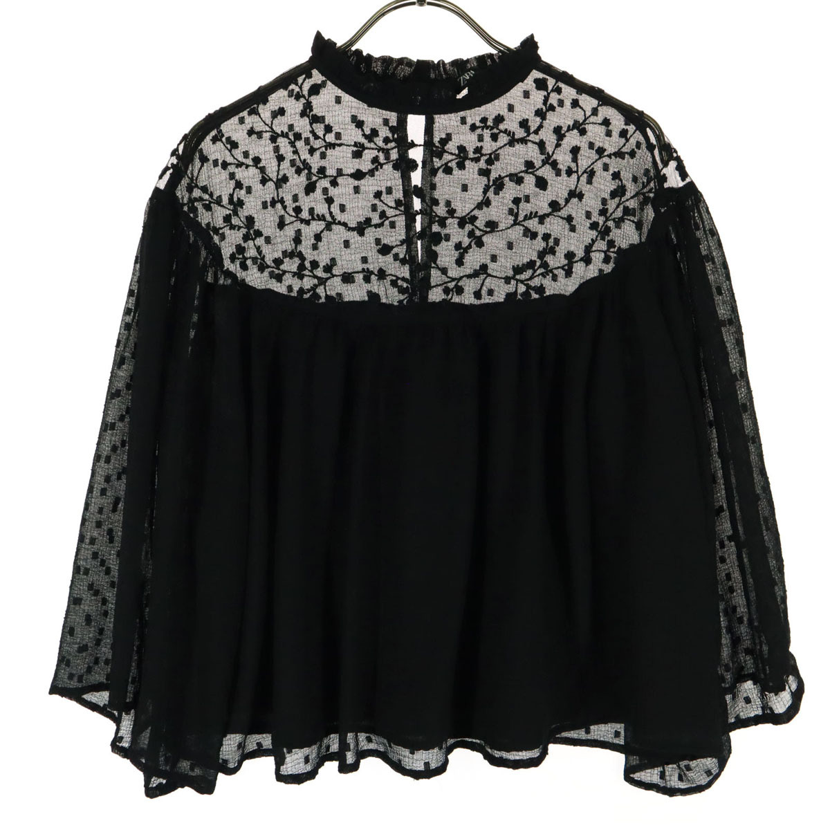 美品 ZARA ザラ レース 長袖 シースルー ブラウス XS ブラック レディース