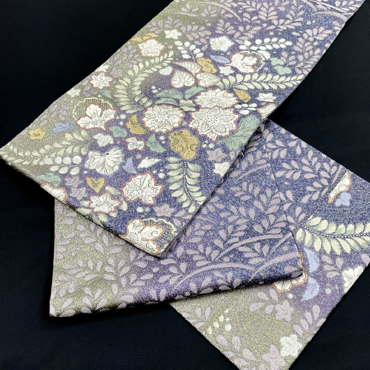 > 着物月花 辻ケ花文様 袋帯 お太鼓柄 正絹 金糸 ob7134