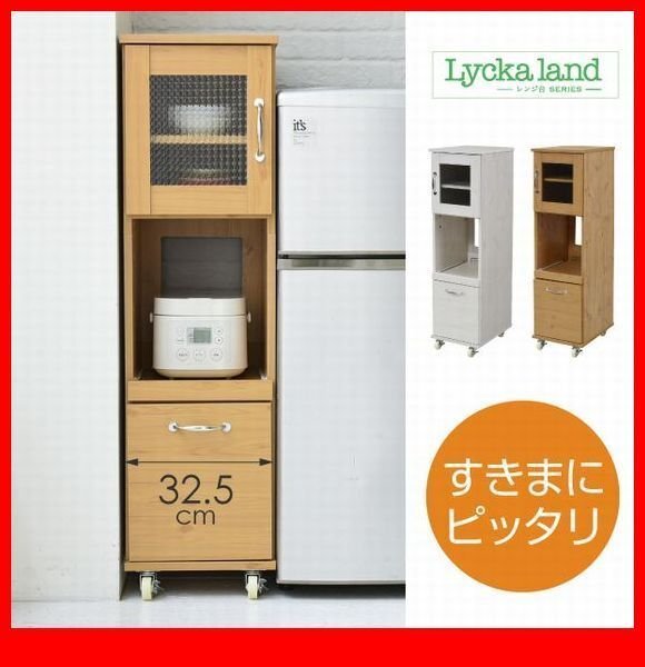 - 食器棚★スリム キッチンラック 隙間タイプ H120cm/食器棚 家電収納 キッチンワゴン 隙間収納/キャスター付/ナチュラル 白/FLLA-0067/zz