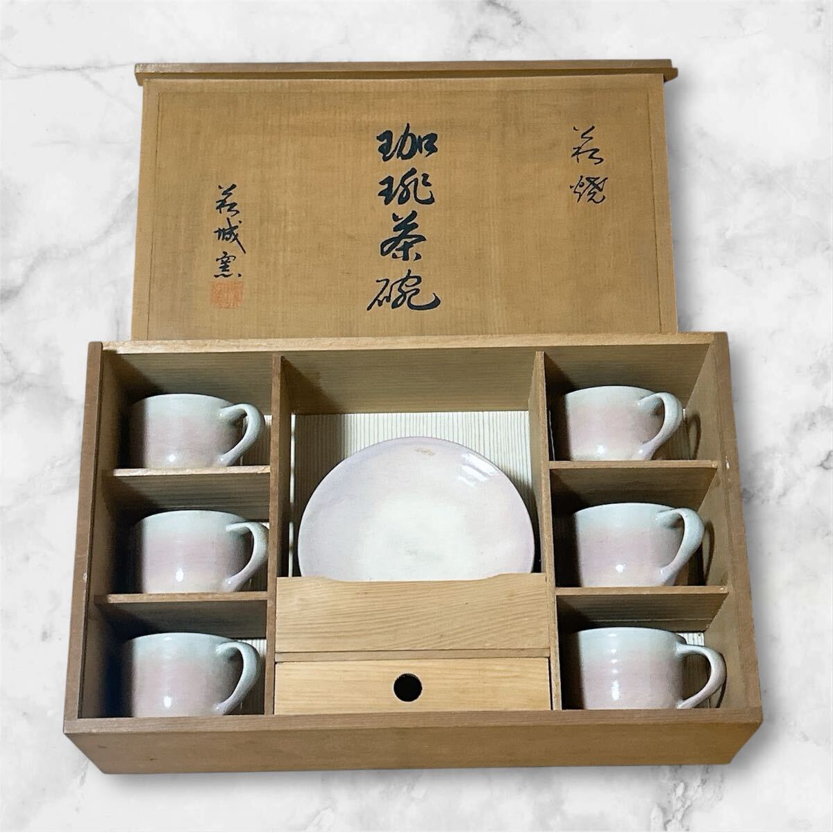 - 【萩焼】萩城陶 コーヒーカップ 6客セット 木箱入り 萩焼き カップ ソーサー 珈琲茶碗 YU