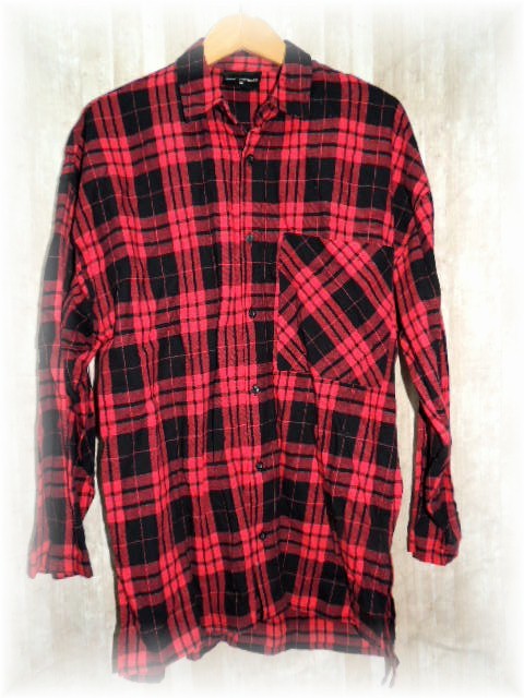 - バックプリント 長袖シャツ メンズM レッド×ブラック 羽織り