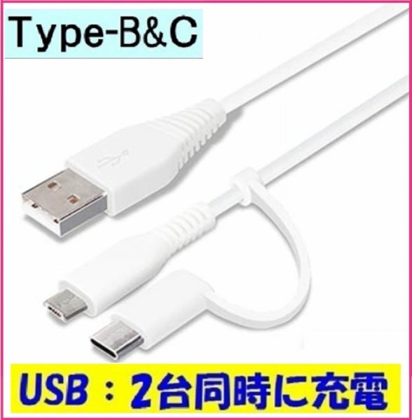 > 【送料無料:1点:2in1 USBケーブル】★50cm タイプB & タイプC★充電ケーブル:スマホ★白:充電器 携帯 アンドロイド