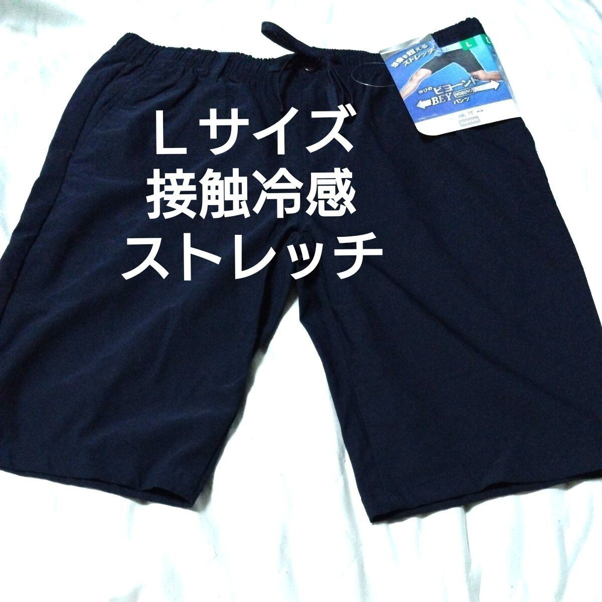 - ②メンズ 紳士 ハーフパンツ Lサイズ 接触冷感 ストレッチ UV対策 サイズL 両脇・後ろポケットあり ウエスト紐付 ネイビー