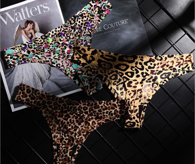 - 【新品】2XL 極薄 アイス シルク ノーライン ランジェリー 下着 豹柄 パンティ シームレス 無縫製 ビキニ 伸縮性 Tバック 3枚セット#295