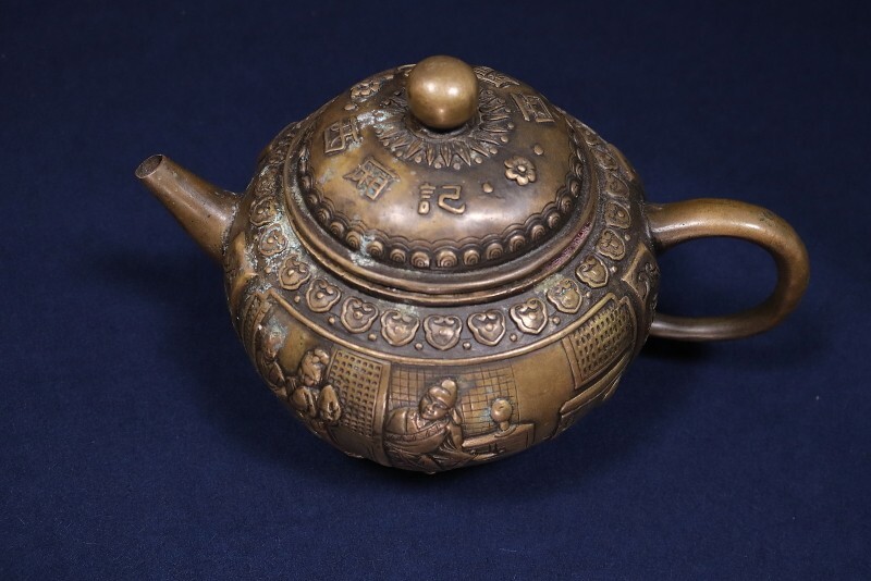 - 11045■ 茶壷 西廂記 大清乾隆年製 金属製 中国茶 中国茶器