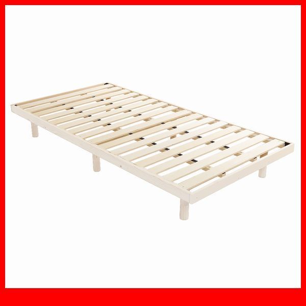 - ベッド★高さ3段階調整 脚付き 天然木 すのこベッド シングル/北欧インテリア パイン材 低ホルムアルデヒド/ホワイトウォッシュ/新品/a4