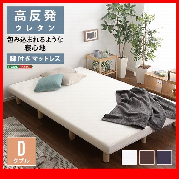 > ベッド★脚付きマットレスベッド/ダブル 高反発ウレタン ロールマットレス すのこ構造 天然木脚/ブラウン ネイビー ホワイト/zz
