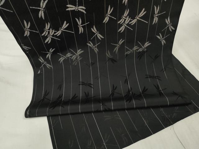 > 平和屋着物▼夏物 小紋 反物 着尺 蜻蛉 トンボ 紋紗 黒地 逸品 未使用 DAAW7062zzz