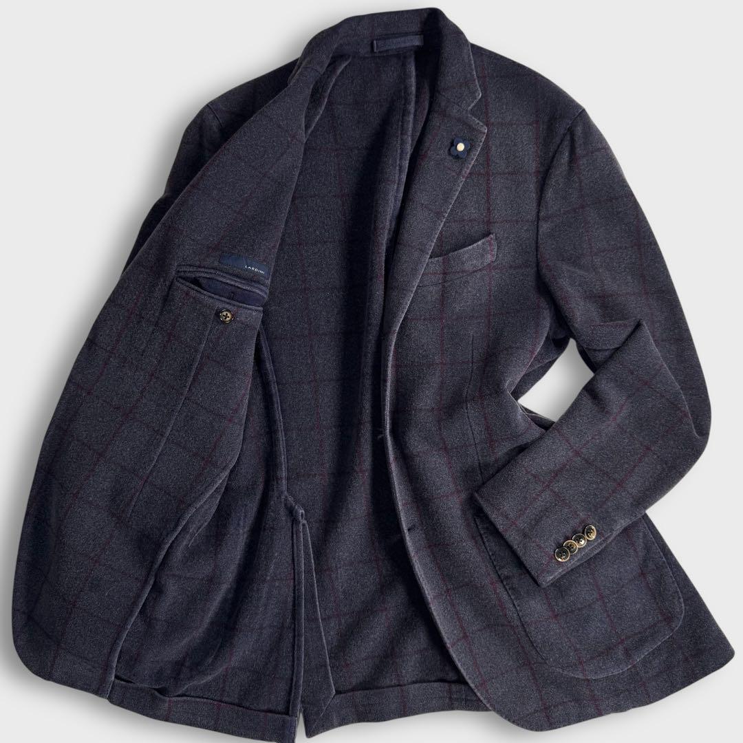 > 美品 L LARDINI ラルディーニ アンゴラ テーラードジャケット ネイビーグレー 秋冬 チェック柄 メンズ アンコン ビジネス カジュアル
