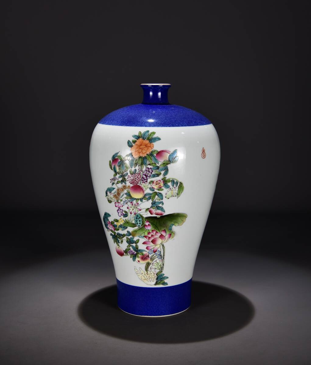 > ▽鴻▽ 清 乾隆年製款 古陶瓷品 粉彩 壽字梅瓶 陶藝 古賞物 古董品 時代物 稀少珍品 中国古玩 中国古美術