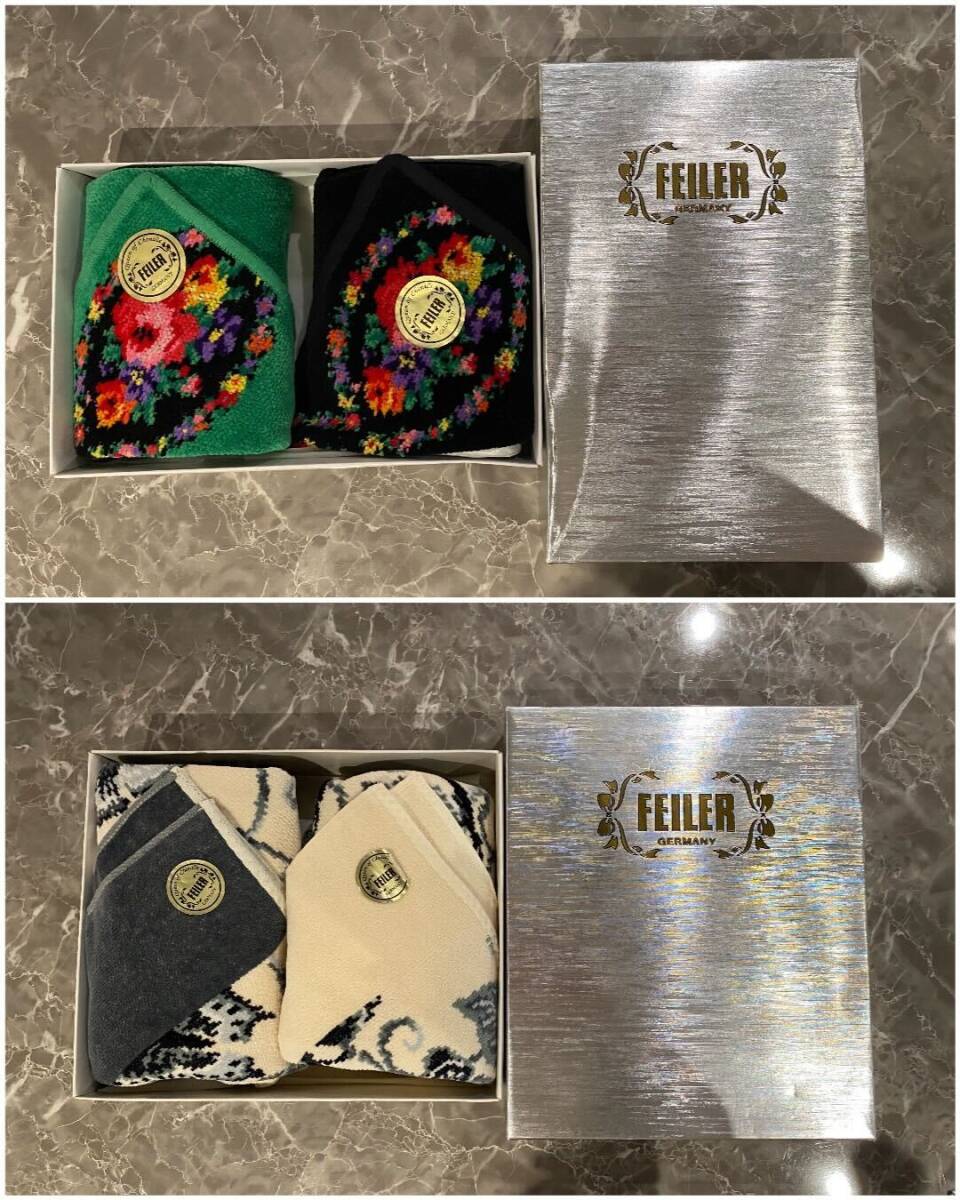 - A-12-119【八】☆未使用☆ FEILER フェイラー バスタオル 50×100cm ハンカチタオル 35×35cm 計4枚セット シュニール織 花柄 蝶々