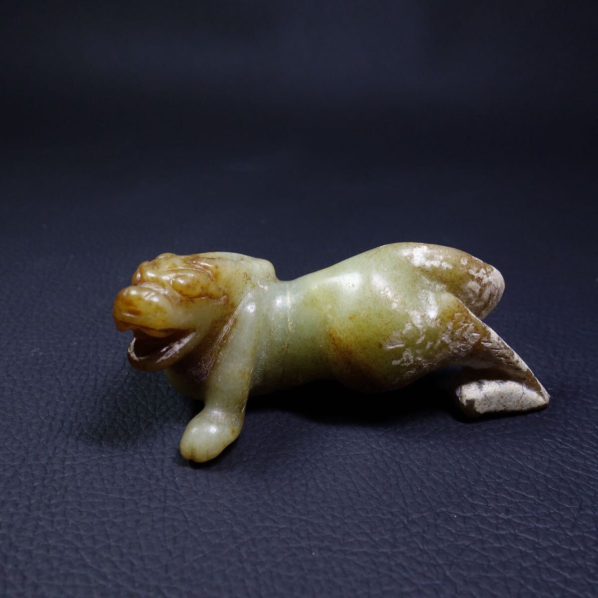 - 漢時代 和田玉 瑞獣紋彫り件 時代物 中国古美術 骨董品本玉 置物 玉彫刻古玩 時代物旧家蔵出し