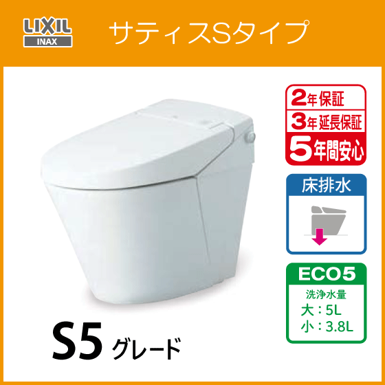 - 便器 サティスSタイプ ECO5 S5グレード(ブースターなし) YBC-S40S DV-S815 タンクレス リクシル LIXIL INAX