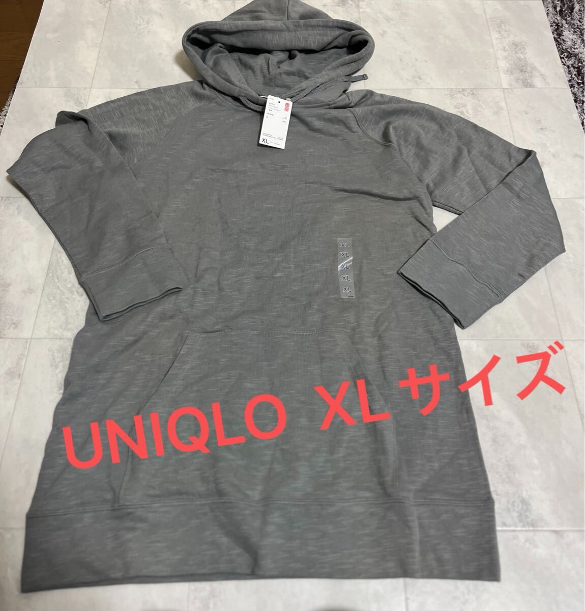 > 新品 UNIQLO ユニクロ レディース XLサイズ 綿100% スラブスウェット フーデッドチュニック 長袖 グレー パーカー 長袖