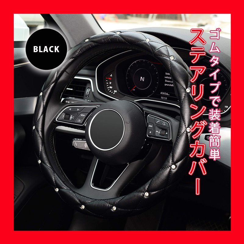 - ハンドルカバー ブラック ステアリングカバー キルティング ストーン クリスタルキルト 自動車 キルト 車 キラキラ 黒