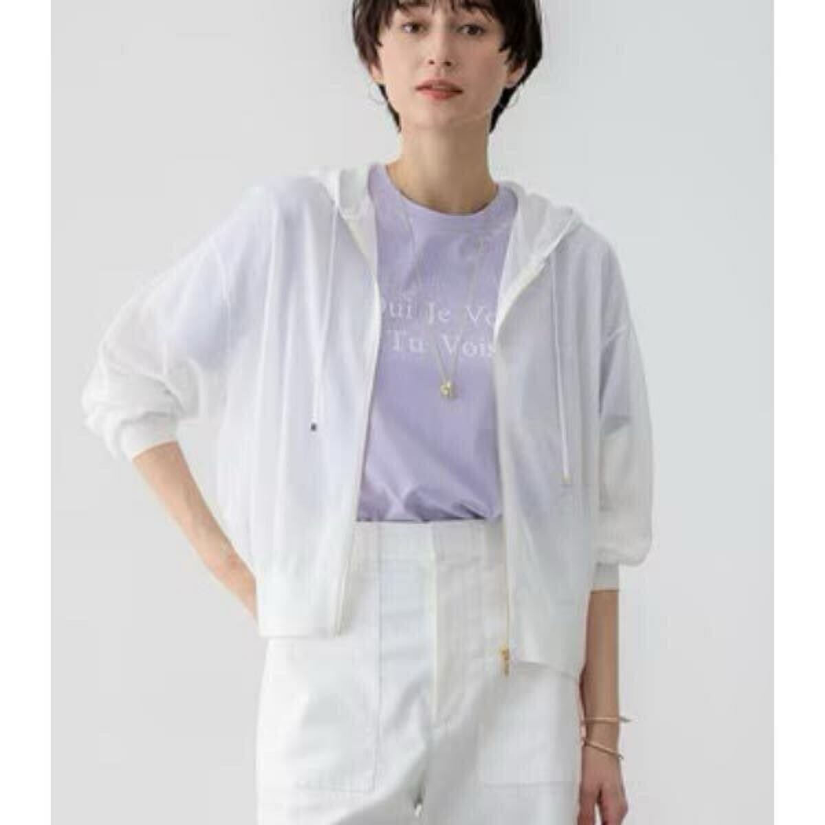 > 23区【洗える】シャイニーシアー ニット パーカー 38・Mサイズ・白系ホワイト001・新品 カーディガン