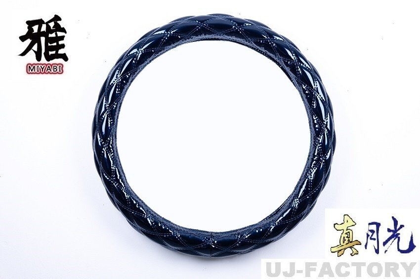> ★MIYABI/真月光・ダブルステッチ ハンドルカバー ネイビー/LMサイズ(40.5cm~41.5cm)★エナメル調PVCレザー/車内をドレスアップ♪