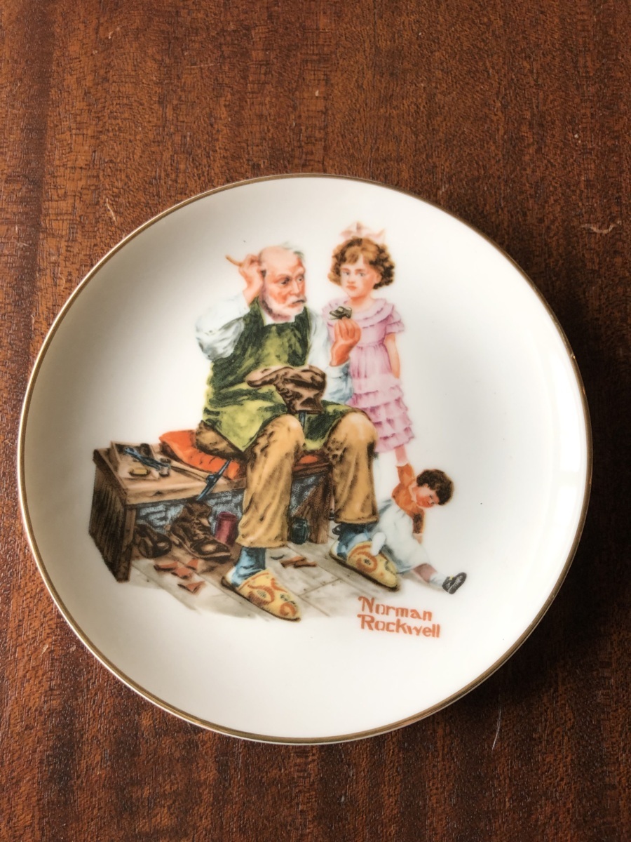 - 2126 アメリカ ビンテージ 皿 プレート NormanRockwell 靴職人 陶器製 インテリア 食器 キッチン 飾り皿 高さ2cm 直径16.5cm baa