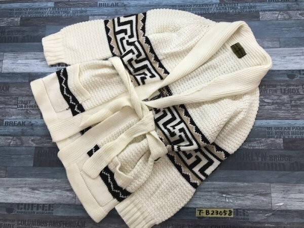 - LOW BRIDGE メンズ アクリル ベルト付き カーディガン 白焦げ茶ベージュ