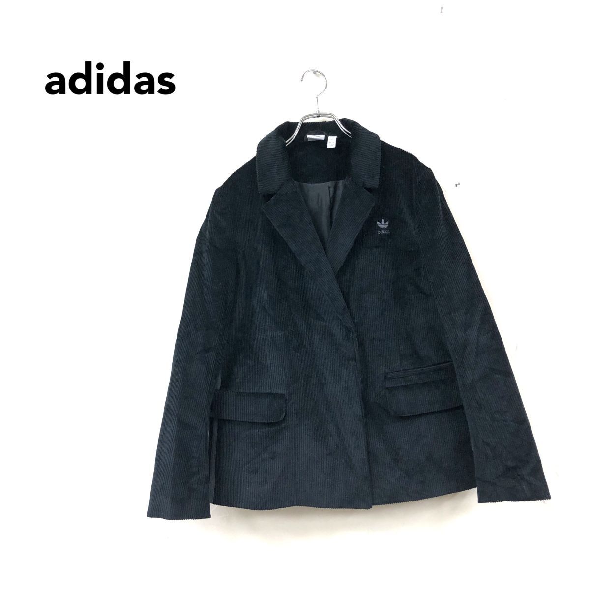> 2K3446-N◆良品◆ adidas アディダス コーデュロイジャケット ダブル サイドライン トレフォイル ◆sizeS ブラック コットン