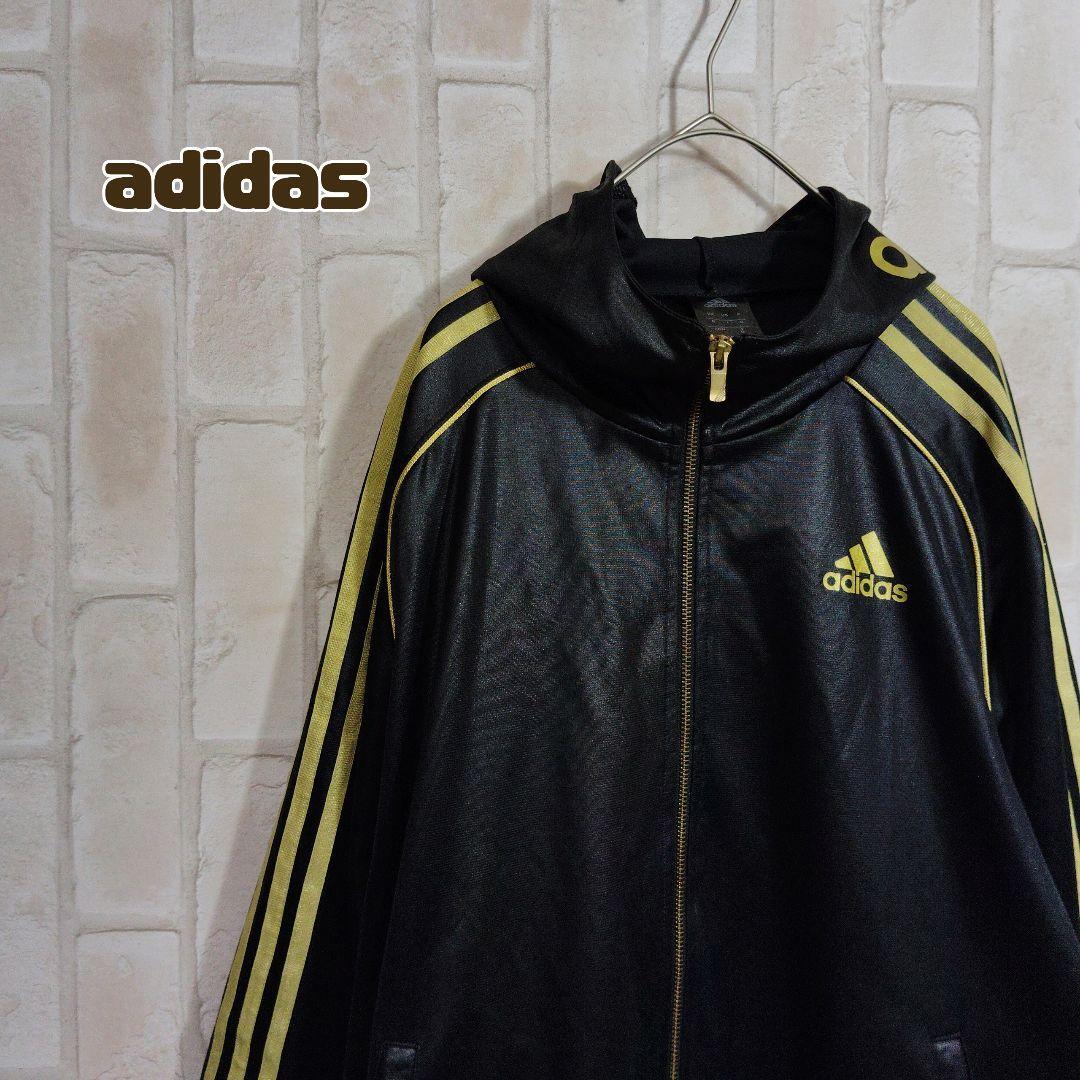 - アディダス adidas トラックジャケット コーティング フード 金 黒