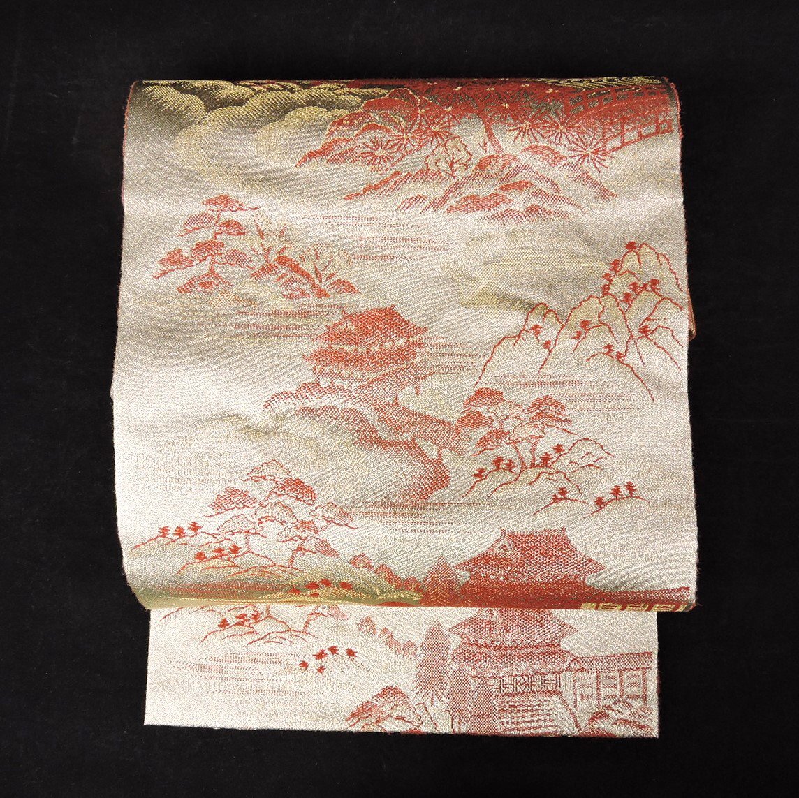 - 激安!〔値下げ〕【中古】名古屋帯 名古屋仕立て 風景画 金糸 金彩 カジュアル 訪問