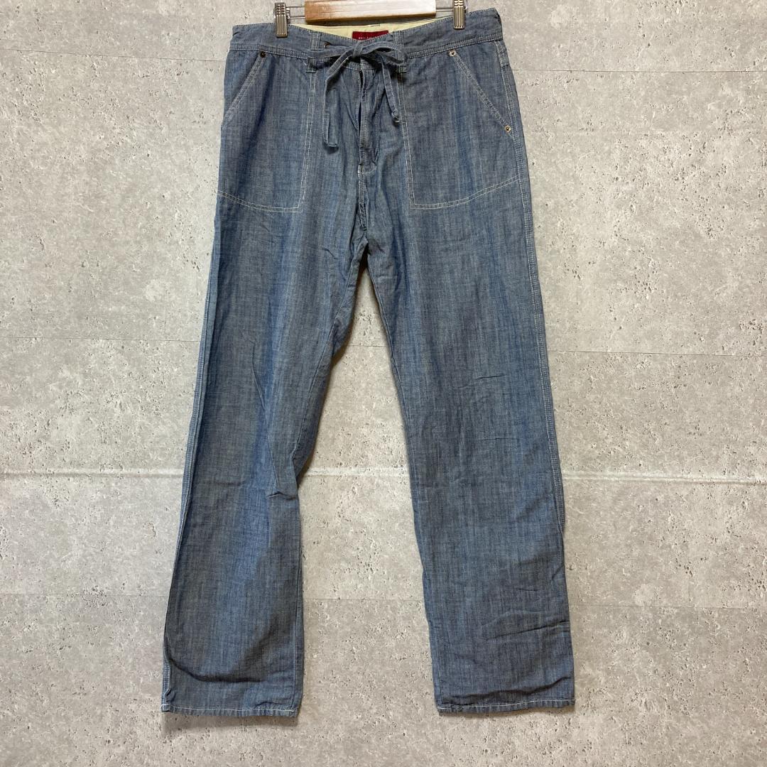 - しまむら(78)デニムイージーパンツ*ウエスト紐*綿100%*カジュアル*青