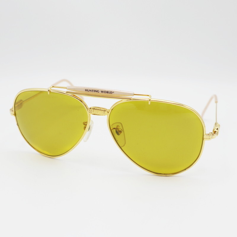 - 美品 HUNTING WORLD ハンティングワールド ティアドロップ メタルフレーム サングラス ゴールド/ブラウン K08-k102