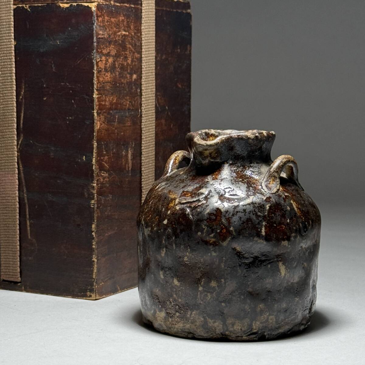 - 【茂蔵】古陶磁コレクター旧蔵品 古越前お歯黒壺 時代桐箱付き 伝世 室町時代〜安土桃山時代【検:六古窯 古志野 古瀬戸 古信楽 古織部】