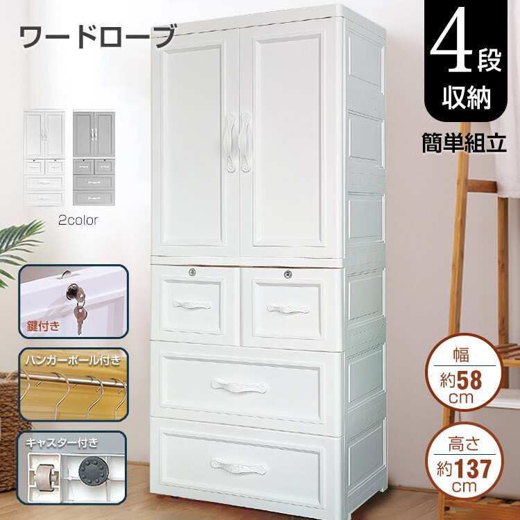 - 1円訳あり 洋服 タンス 収納 おしゃれ スリム ワードローブ クローゼット リビング チェスト 幅58cm ボックス ケース 子ども ny482-w