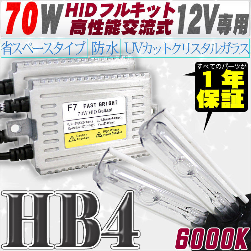 - 高性能 HIDキット 70W HB4 6000K 【交流式バラスト&クリスタルガラスバーナー】 12V用