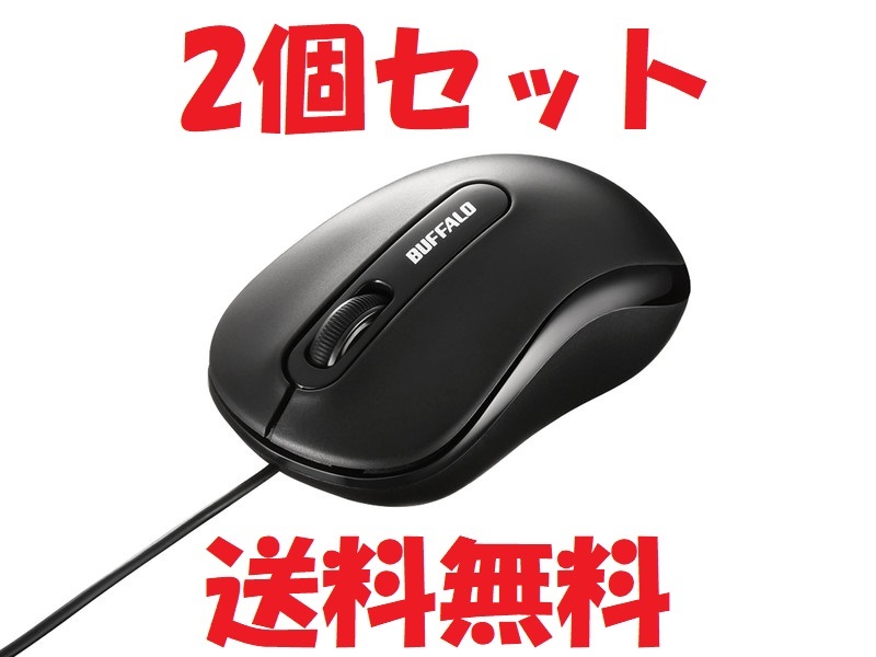> 送料無料【訳あり・未使用品】2個セット BUFFALO 有線 光学式マウス Mサイズ 黒■ケーブル長 約1.5m■バッファロー USBマウス 有線マウス