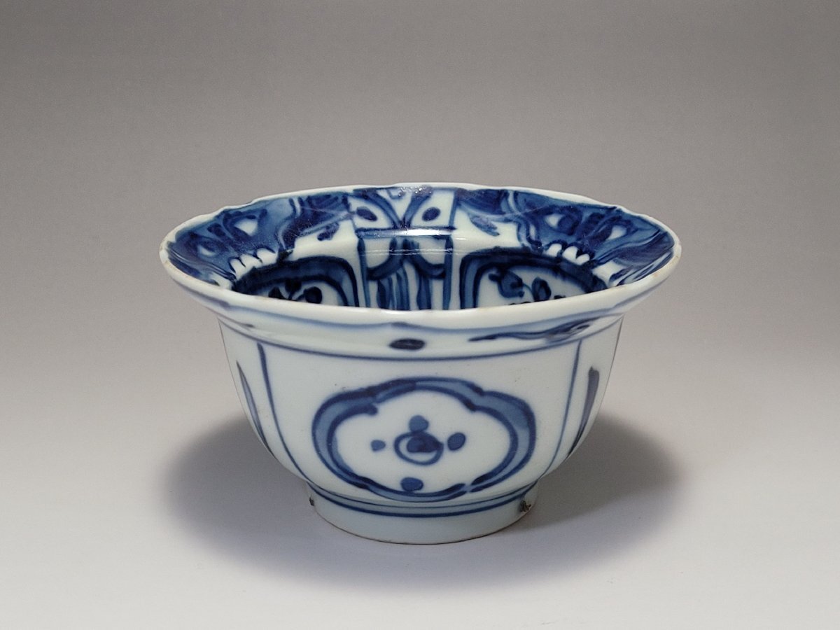 > 染付 鹿紋 花紋 茶杯 時代唐物 幅約9.5cm / 明清時代 盃 小碗 杯 盞 小鉢 茶道具 煎茶道具 酒器 唐物 人間国宝 李朝 高麗 古玩 古董