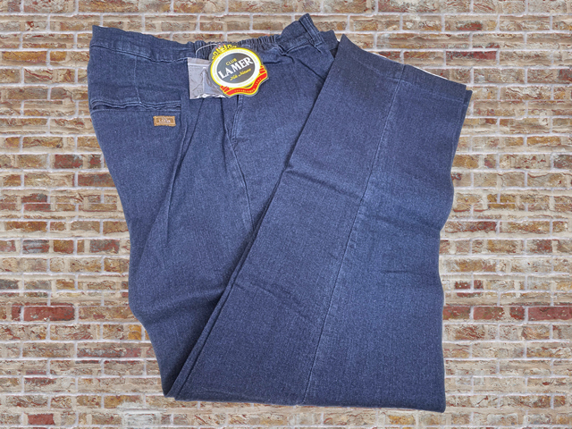 > 41211-1-nb515 ウエスト85-100cm 股下72cm CLUB LAMER 脇シャーリング らくらくスラッとデニムパンツ