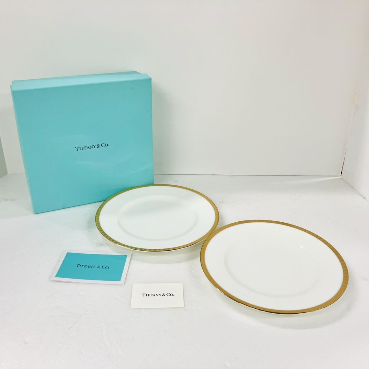 > S055-Z22-496 TIFFANY&Co. プレート 2点 食器 デザートプレート ゴールドバンド ペア ティファニー 直径約8cm 高さ約2cm SA