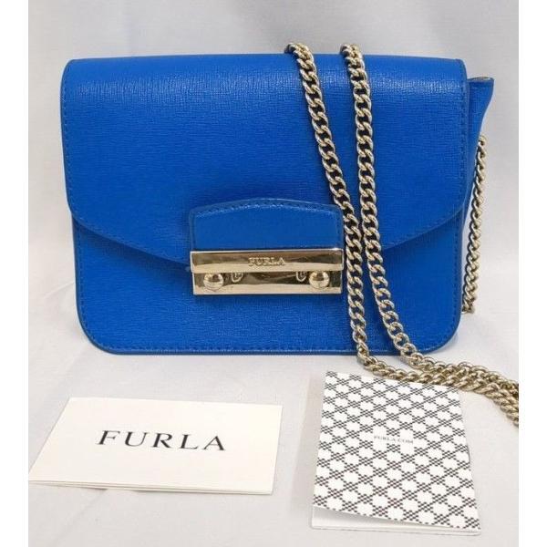 - FURLA フルラ メトロポリス ミニクロスボディショルダーバッグ チェーン ブルー ◆2010