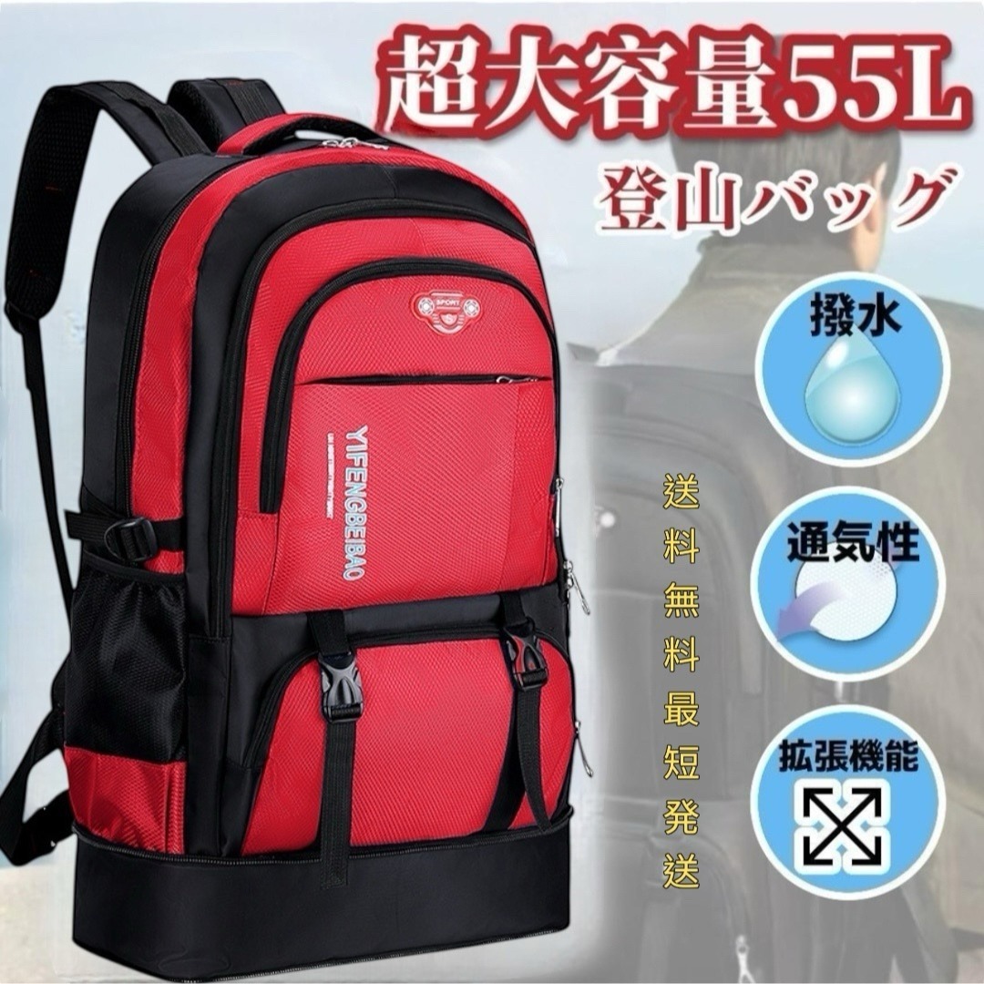 - リュック バックパック 大容量 防水 大型 アウトドア 55L 旅行 防災 登山 キャンプ リュックサック 登山リュック 赤色 送料無料 最短発送