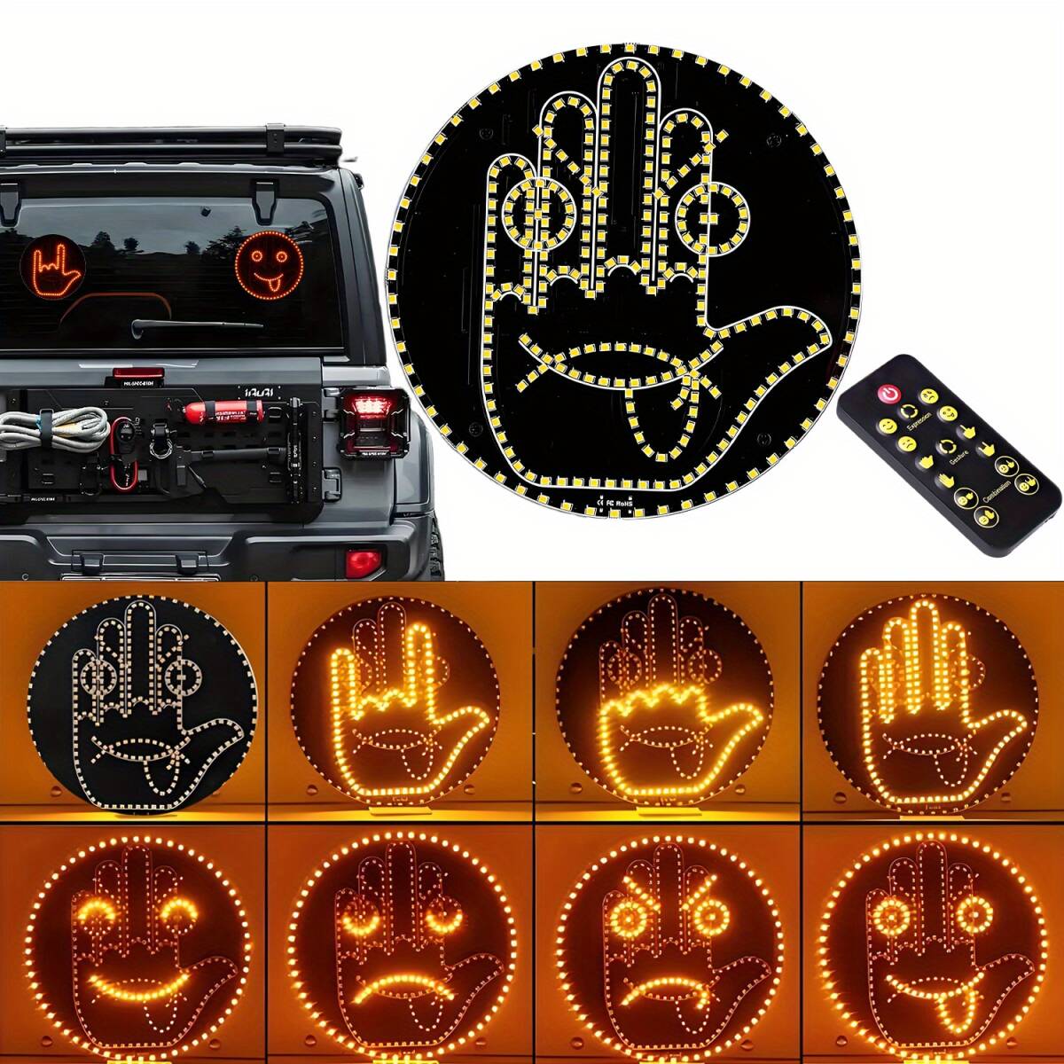 - 車用 LEDライト ジェスチャー ハンドサイン 補助ライト 笑顔 14.4cm リモコン付き オレンジ 車内ライト 装飾 デコ 電池式 12モード t8900