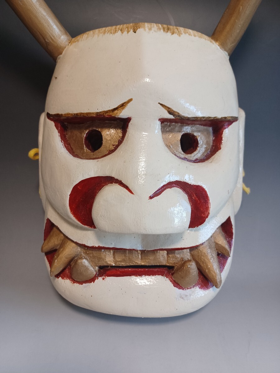 - No.22 コレクター放出品 般若面 お面 魔除け 木彫り 木彫り面 能面 神楽 細密彫刻 木工芸 箱なし 和風インテリア